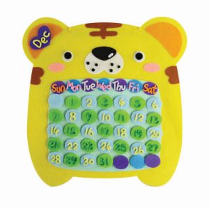 既實用又副趣味的萬年曆手工。每套包括已啤絨布圖案、鐵芯絨線、毛絨球、眼睛、絲帶。製成品約38x39cm,邊做邊學,非常適合放在課室或房間作教具。