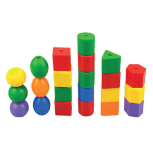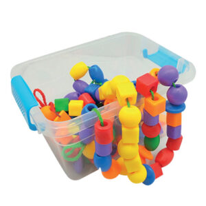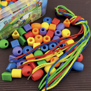 膠盒裝,每套包括珍寶特大膠珠120粒、穿繩8條。訓練孩子手眼協調能力。