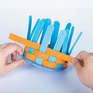 學習編織技巧。每套包括已啤彩虹膠籃底、彩虹膠條、繩子、眼睛、兒童塑膠針。